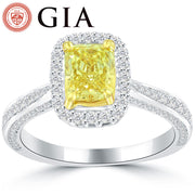1.90 Carat GIA Certified Fancy Intense Yellow Diamond Engagement Ring 14k Gold