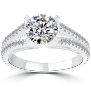 This elegant, classy and traditional round diamond engagement ring is set perfectly with a 1.44ctw round brilliant center diamond that is accompanied by 0.47ctw of F-VS round brilliant side diamonds. The center diamond is secured in a prong setting. Two rows of round brilliant side diamonds are set beautifully along the elegant split shank band of this ring. This diamond engagement ring is made in 18k white gold.