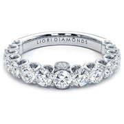 This stunning ladies diamond wedding band ring holds 1.92 ctw of sparkly round brilliant diamonds. This diamond wedding band is beautifully crafted in an art deco design which adds to the unique look of this diamond wedding band. Each diamond is securely set in a micro pave setting. This diamond wedding band makes for a great anniversary ring or a matching band to you engagement ring. This gorgeous diamond wedding band is made in 14k white gold.