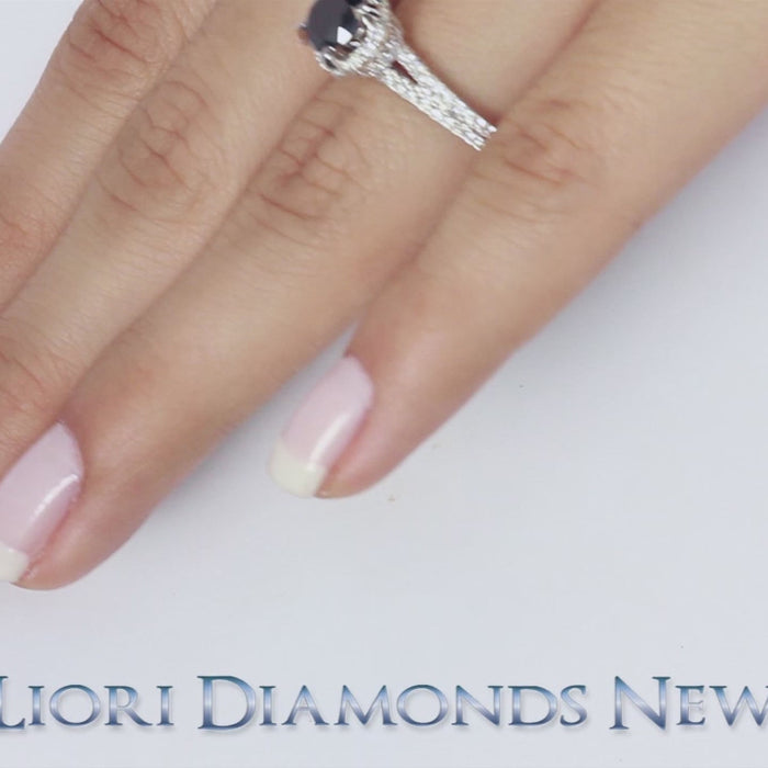1.92 Carat Certified Natural Black Diamond Engagement Ring 18k White Gold