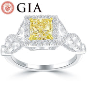 1.94 Carat GIA Certified Fancy Intense Yellow Diamond Engagement Ring 18k Gold