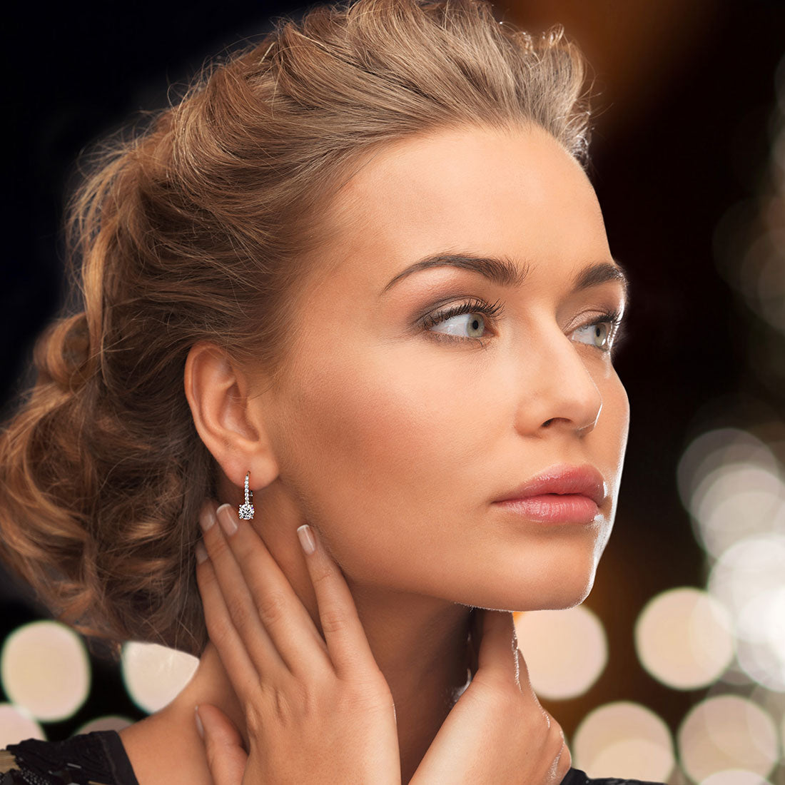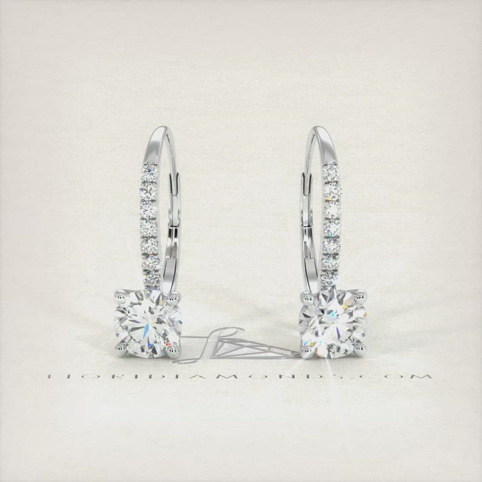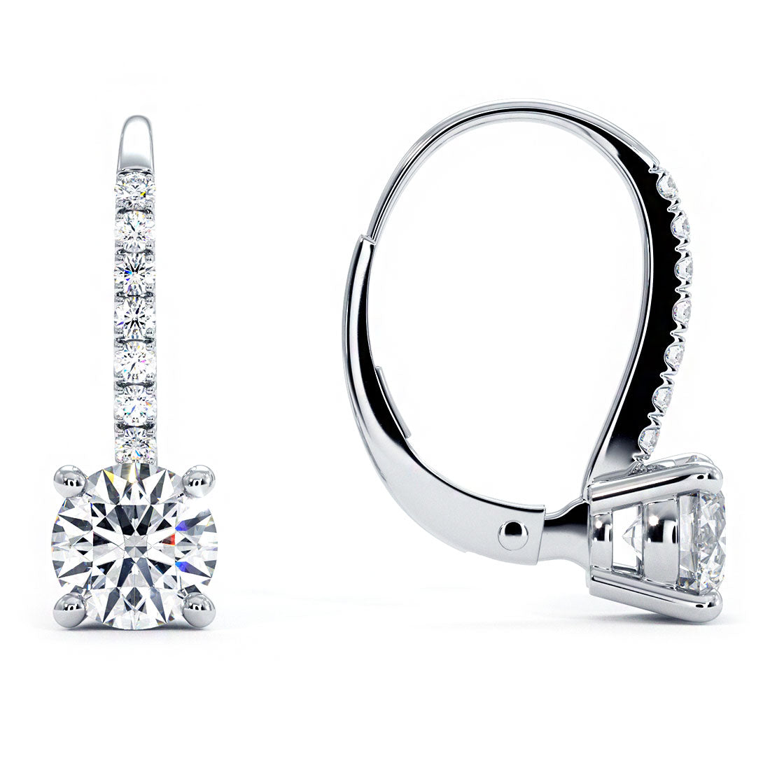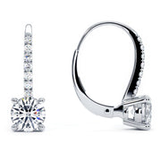 1.95 Carat Round Diamond Leverback Hanging Drop Earrings 18k White Gold