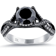 1.99ctw Vintage Style Natural Black Diamond Engagement Ring 18k Black Gold