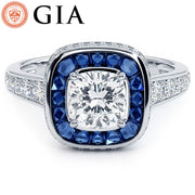1 Carat Cushion Cut Art Deco Sapphire & Diamond
