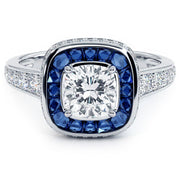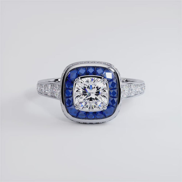 1 Carat Cushion Cut Art Deco Sapphire & Diamond