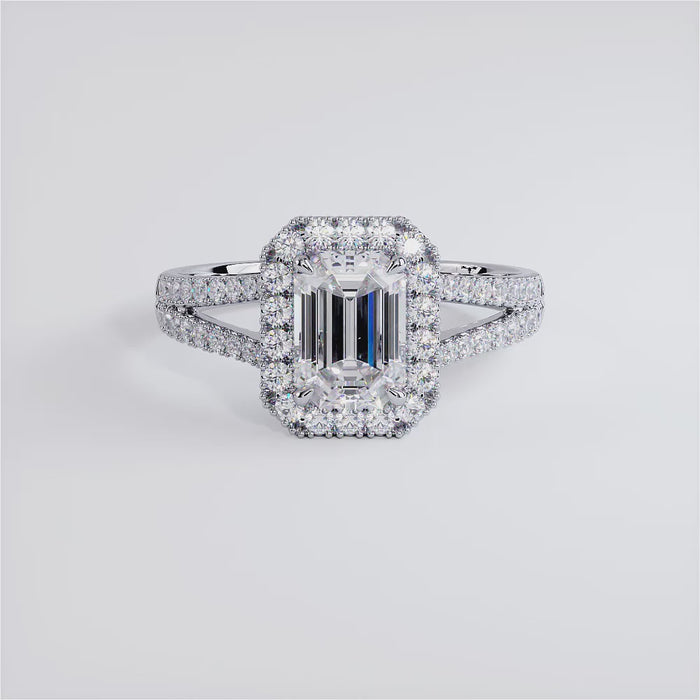 1 Carat Emerald Cut French Cut Halo Split Shank