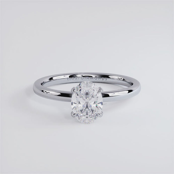 A classic petite micropavé wire basket diamond engagement ring set with 1.00ct dew Oval Cut VVS & Colorless (D-E-F) Moissanite.