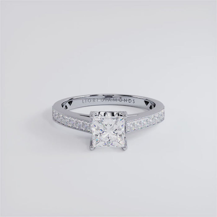 1 Carat Princess Cut Cathedral Milgrain Channel Set
