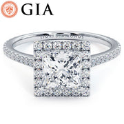 A square micropave halo diamond engagement ring set with 100% natural earth mined Diamond (not treated or enhanced in any way).