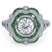 1 Carat Round Brilliant Antique Art Deco Emerald & Diamond