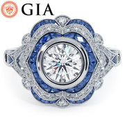 1 Carat Round Brilliant Antique Art Deco Sapphier & Diamond