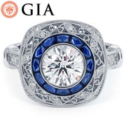 1 Carat Round Brilliant Antique Art Deco Sapphire & Diamond