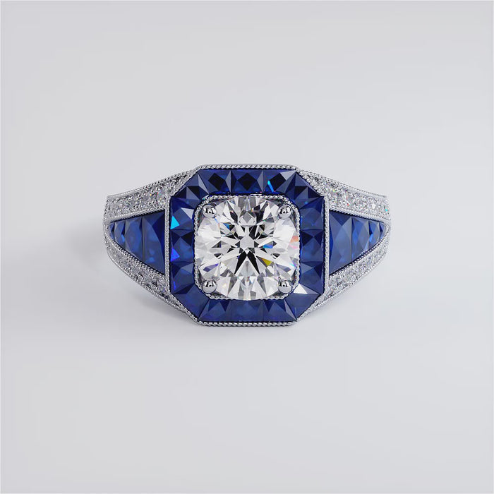 1 Carat Round Brilliant Antique Art Deco Sapphire & Diamond