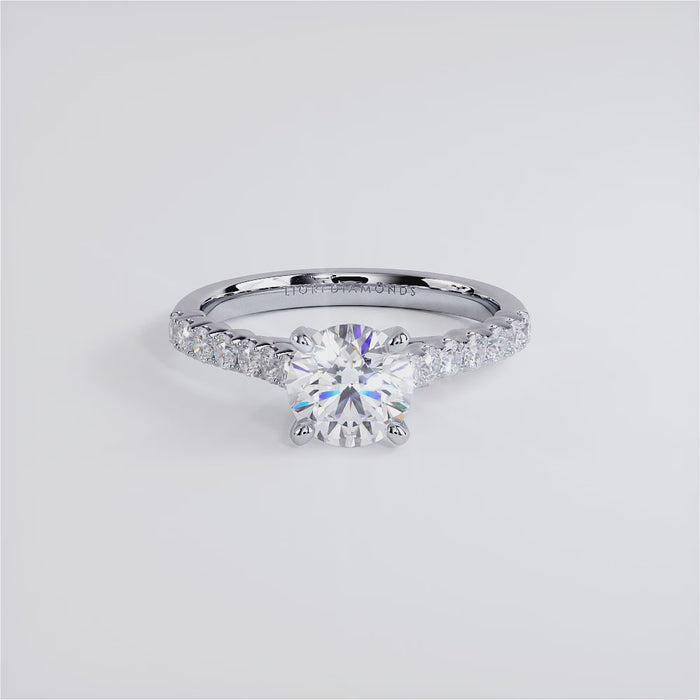 A beaded prong band diamond engagement ring set with 100% natural earth mined diamond (not treated or enhanced in any way).
