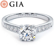 A cathedral micropavé graduated diamond engagement ring set with 1 Carat Round Cut Lab Grown Diamond.