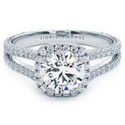 A halo split shank french cut diamond engagement ring set with 1 Carat Round Cut Lab Grown Diamond.