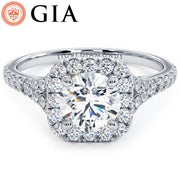 A diamond halo split shank diamond engagement ring set with 1 Carat Round Cut Lab Grown Diamond.