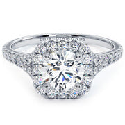 A diamond halo split shank diamond engagement ring set with 1.00ct dew Round Cut  VVS &Colorless (D-E-F) Moissanite.