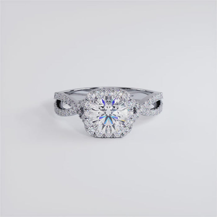 1 Carat Round Brilliant Infinity Twist Square Halo