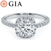 A micropavé halo engagement ring set with 1 Carat Round Cut Lab Grown Diamond.