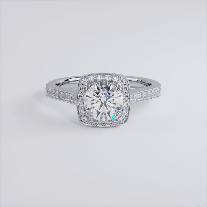1 Carat Round Brilliant Micropavé Halo Milgrain