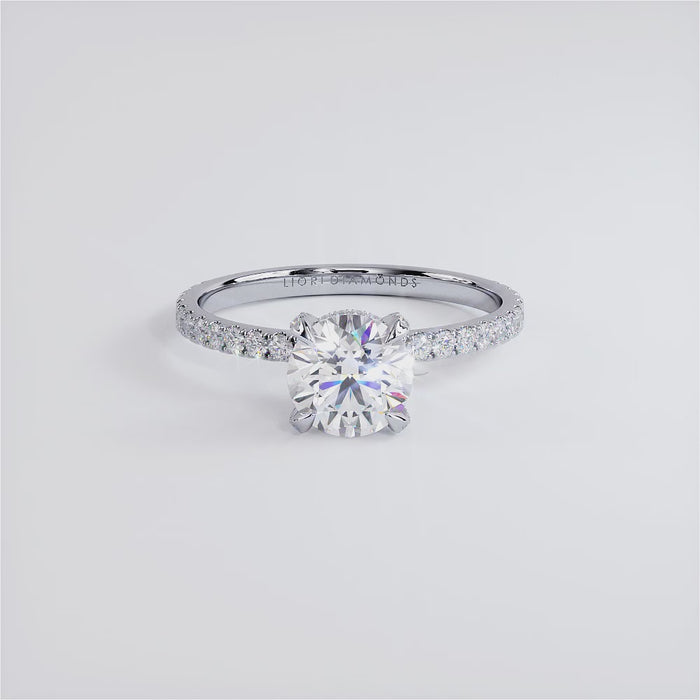 A petite micropavé eagle prongs diamond engagement ring set with 1.00ct DEW Round Cut Charles & Colvard Forever One™ Colorless (D-E-F) Moissanite.
