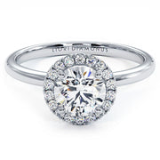 A petite halo micropavé diamond engagement ring set with 1.00ct dew Round cut VVS & Colorless (D-E-F) Moissanite.