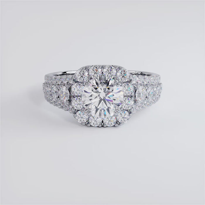 A vintage style large diamond halo engagement ring set with 1 Carat Round Cut Lab Grown Diamond.