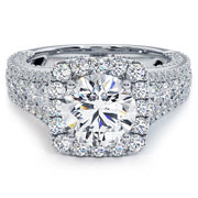 A vintage style micropavé halo graduated shank engagement ring set with 1.00ct dew Round Cut VVS & Colorless (D-E-F) Moissanite.