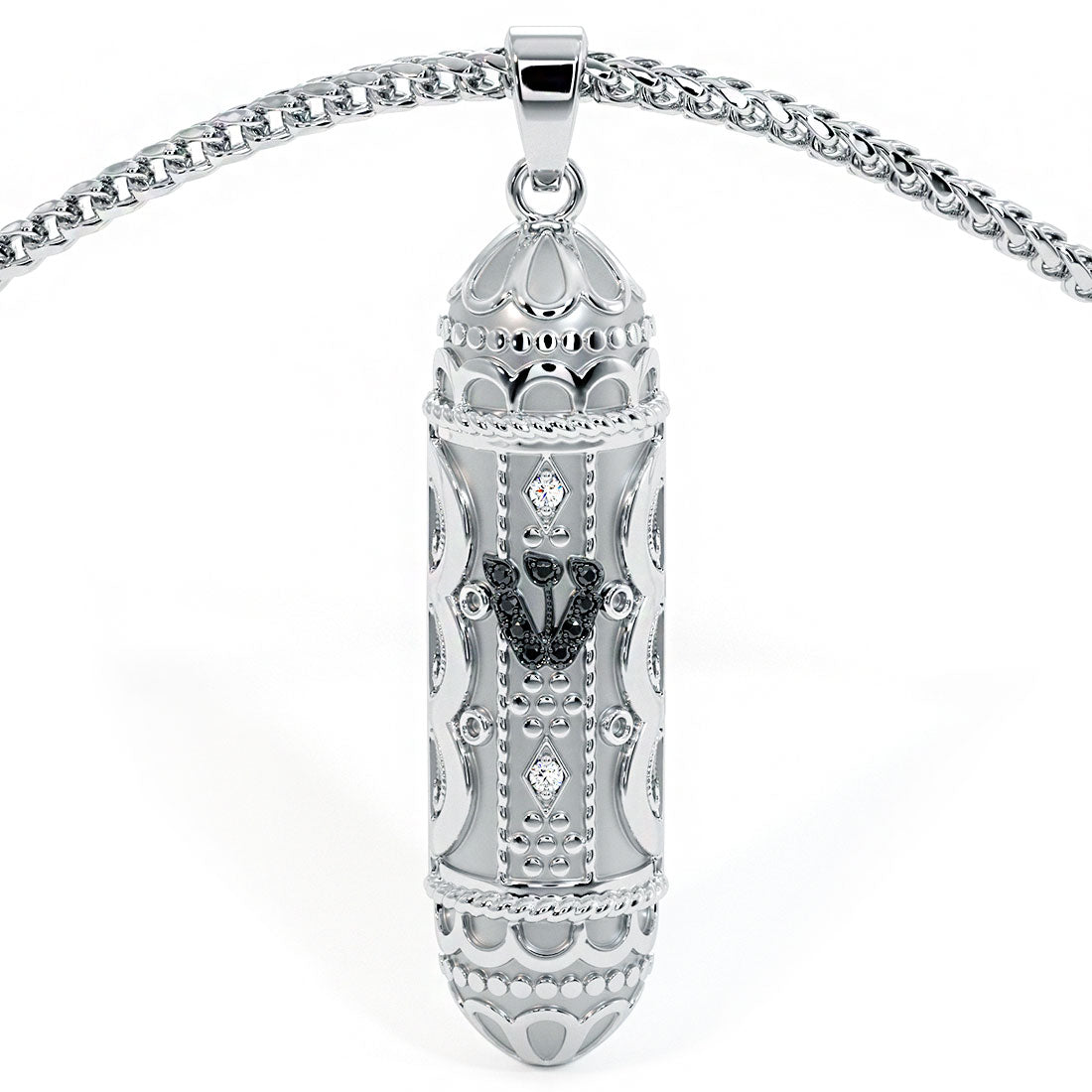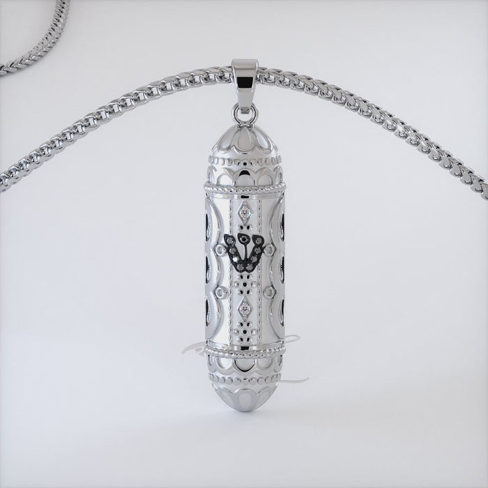 14K White Gold Mezuzah Diamond Pendant Judaica Charm Pendant