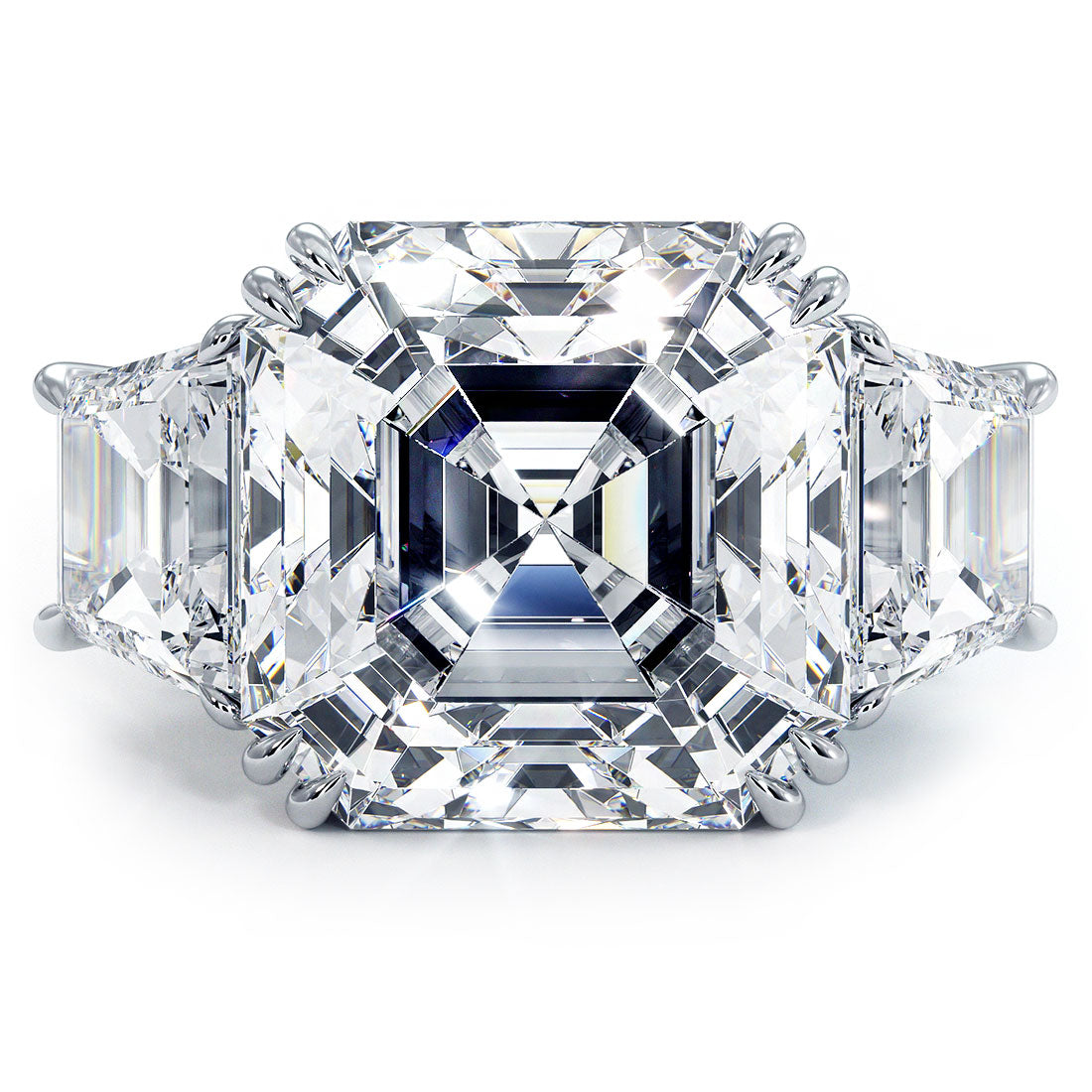 17 Carat Asscher Cut & Trapezoid Three Stone