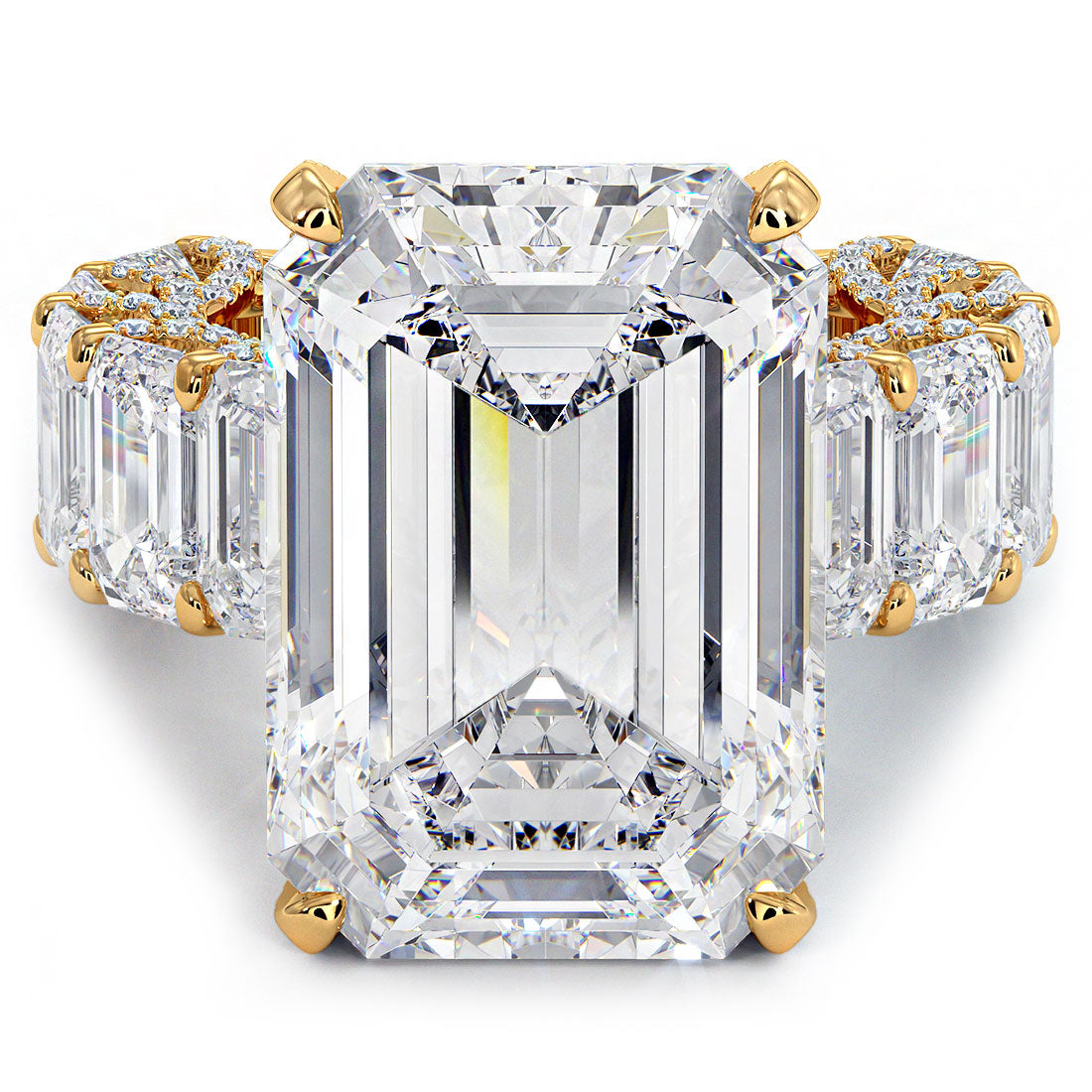 Emerald cut prong set & micropavé lucida set Masterpiece! Diamond engagement ring set with 18 Carat Emerald Cut Lab Grown Diamond.