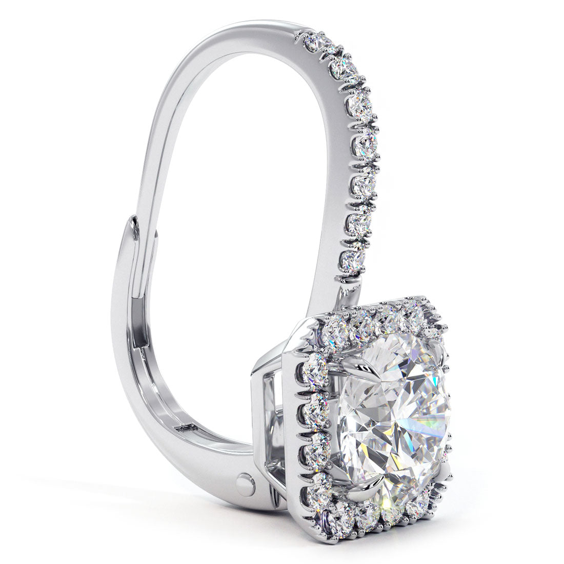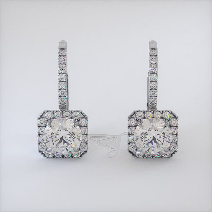 2.00 Carat Round Diamond Leverback Hanging Drop Earrings 18k White Gold