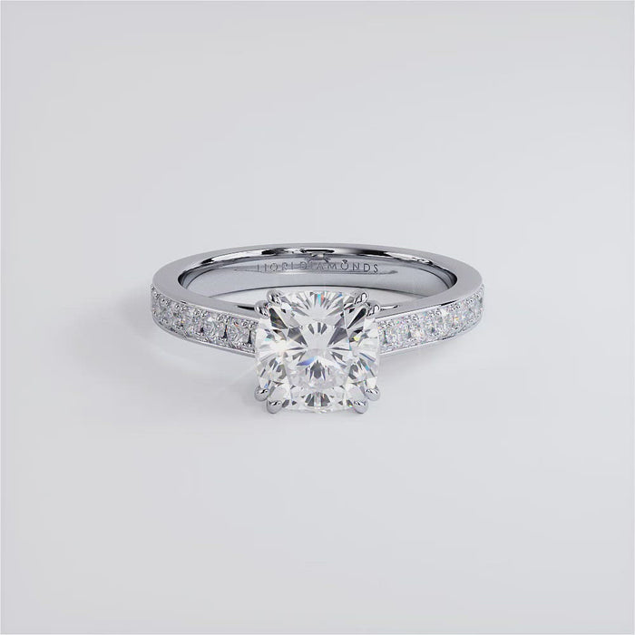 2.00ct Cushion Cut Petite Micropavé Cathedral Diamond Engagement Ring Setting (0.42ctw) in 18k White Gold - Moissanite