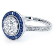 2.00ct Round Brilliant Antique Art Deco Bezel Set Sapphire & Diamond Engagement Ring Setting (1.05ctw) in Platinum - Moissanite