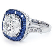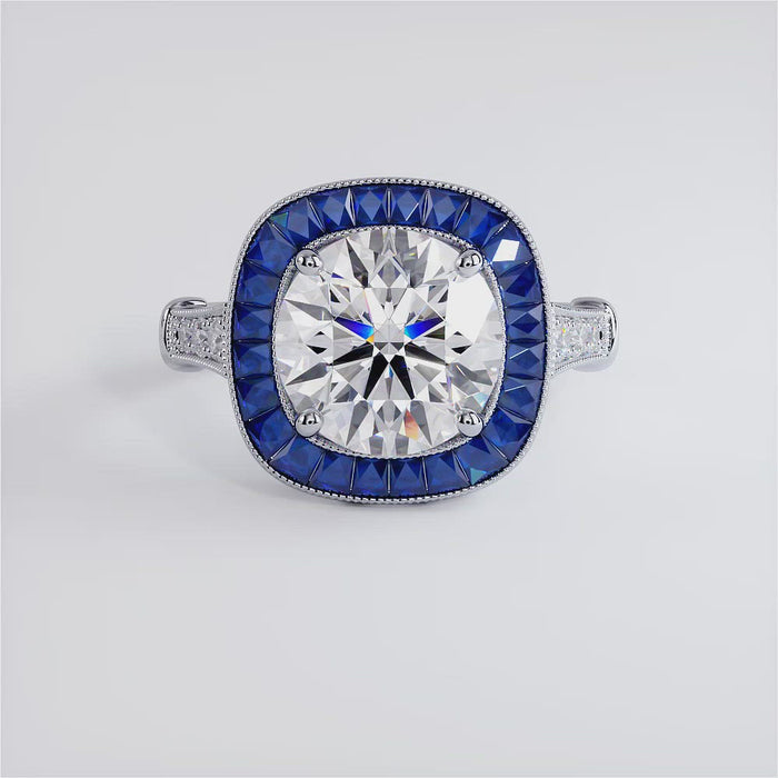 2.00ct Round Brilliant Antique Art Deco Sapphire & Diamond Engagement Ring Setting (1.47ctw) in Platinum - Moissanite