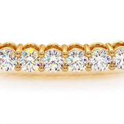 This single row prong set round brilliant cut diamond bangle bracelet is set with F color & VS1 clarity diamonds, every diamond is set beautifully and carefully in a shared prong setting, the double securing clasp allows for worry and stress free wear. This diamond bangle bracelet is made in 14k Yellow Gold.