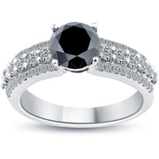 2.02 Carat Certified Natural Black Diamond Engagement Ring 14k White Gold
