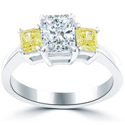2.02 Carat Fancy Yellow & White Radiant Cut Three Stone Diamond Engagement Ring