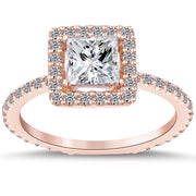 2.02 Carat G-SI1 Princess Cut Diamond Engagement Ring 18k Rose Gold Pave Halo