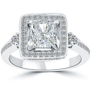 2.05 Carat D-VS1 Radiant Cut Natural Diamond Engagement Ring 14k Gold Pave Halo
