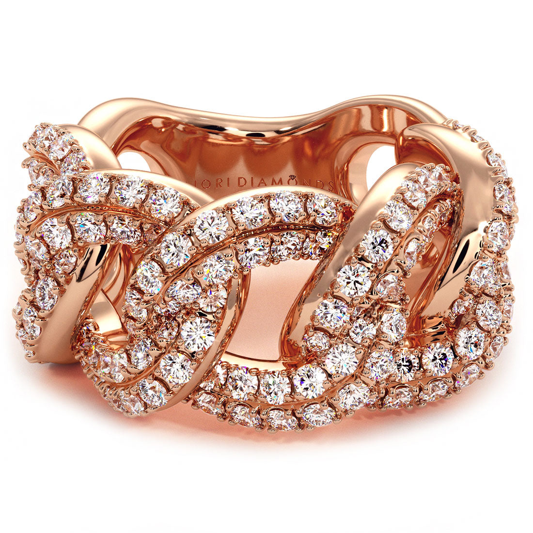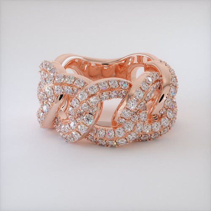 2.06 Carat F-VS Pave Cuban Link Diamond Ring 14k Rose Gold