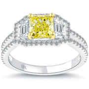 2.08 Carat Fancy Yellow Radiant Cut Diamond Engagement Ring 18k Vintage Style