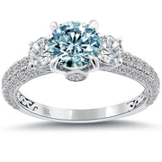 2.09 Carat Fancy Blue & White Round Cut Three Stone Diamond Engagement Ring 18k