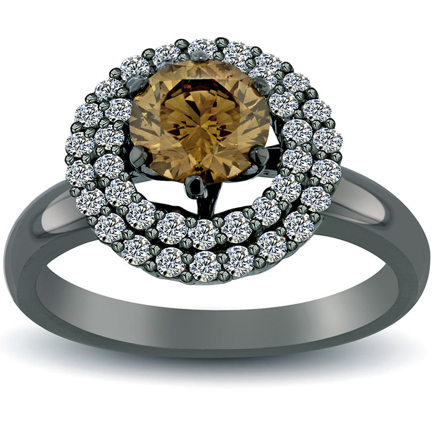 2.09 Carat Natural Fancy Cognac Brown Diamond Engagement Ring 14k Black Gold