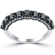 2.10ctw Black & White Diamond Wedding Band Ring Micro Pave 14k White Gold