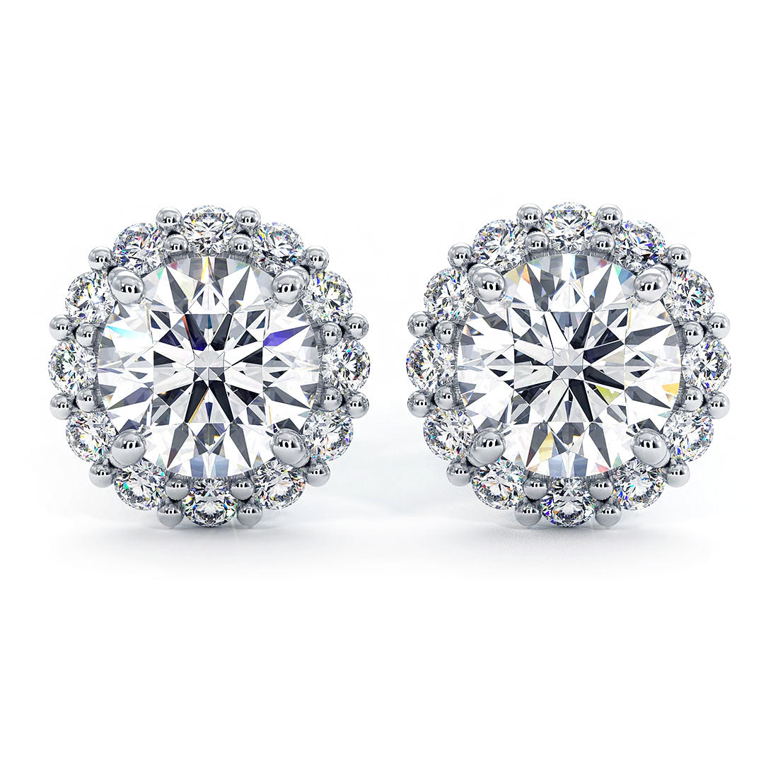 2.10 Carat F-SI Pave Halo Diamond Studs Earrings 18k White Gold