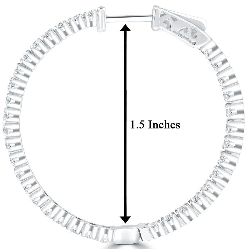 2.10 Carat F-VS-SI Large inside out Diamond hoop earrings 14k White Gold