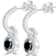 This stunning pair of drop earrings are so elegant and versatile that you can wear them all day long as well as dress them up for an evening affair. The 1.50ctw round brilliant fancy black diamonds are set as the center stones in each earring. 0.60ctw of F-VS round brilliant white diamonds are set in a micro pave setting along the earrings as well. The contrast between the black and white diamonds really make this a unique and beautiful pair of diamond drop earrings. These fancy black diamond earrings are made in 14k white gold.