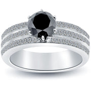 2.13 Carat Certified Natural Black Diamond Engagement Ring 14k White Gold